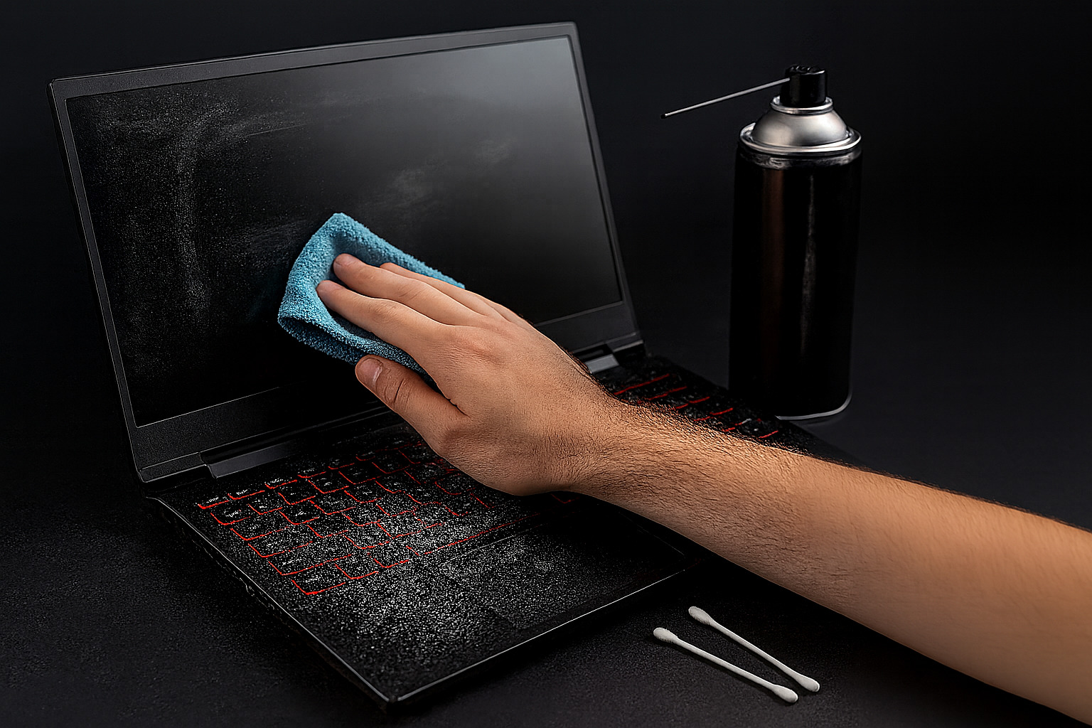 Avant d’ouvrir ton PC ou de sortir les outils, commence par un nettoyage externe soigneux. C’est la première étape quand tu veux savoir comment nettoyer ton ordinateur portable efficacement.